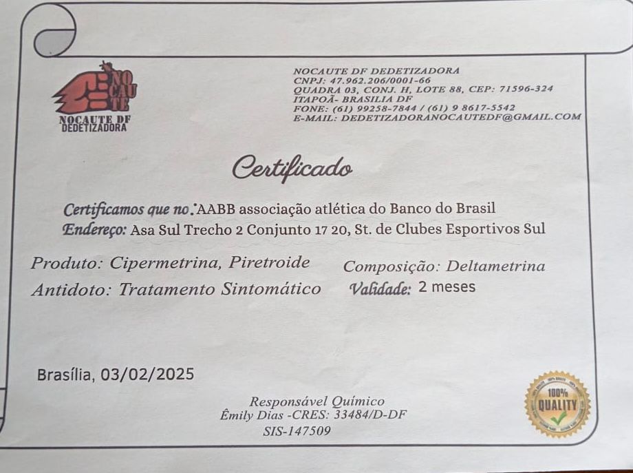 AABB BRASÍLIA PASSA POR AMPLA DEDETIZAÇÃO