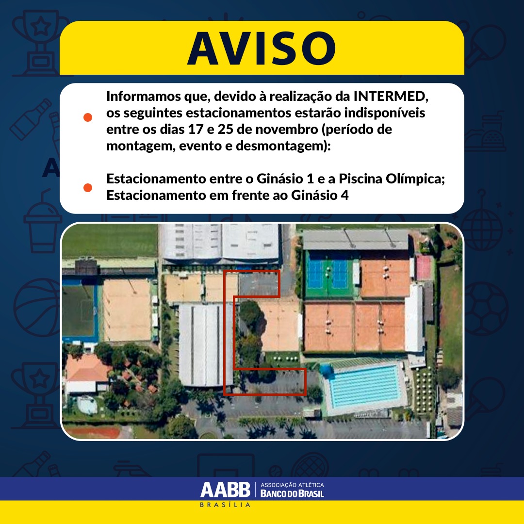 Para a realização do evento, será necessária a interdição de alguns espaços da AABB, incluindo parte dos estacionamentos. A Diretoria agradece, desde já, a compreensão dos associados.