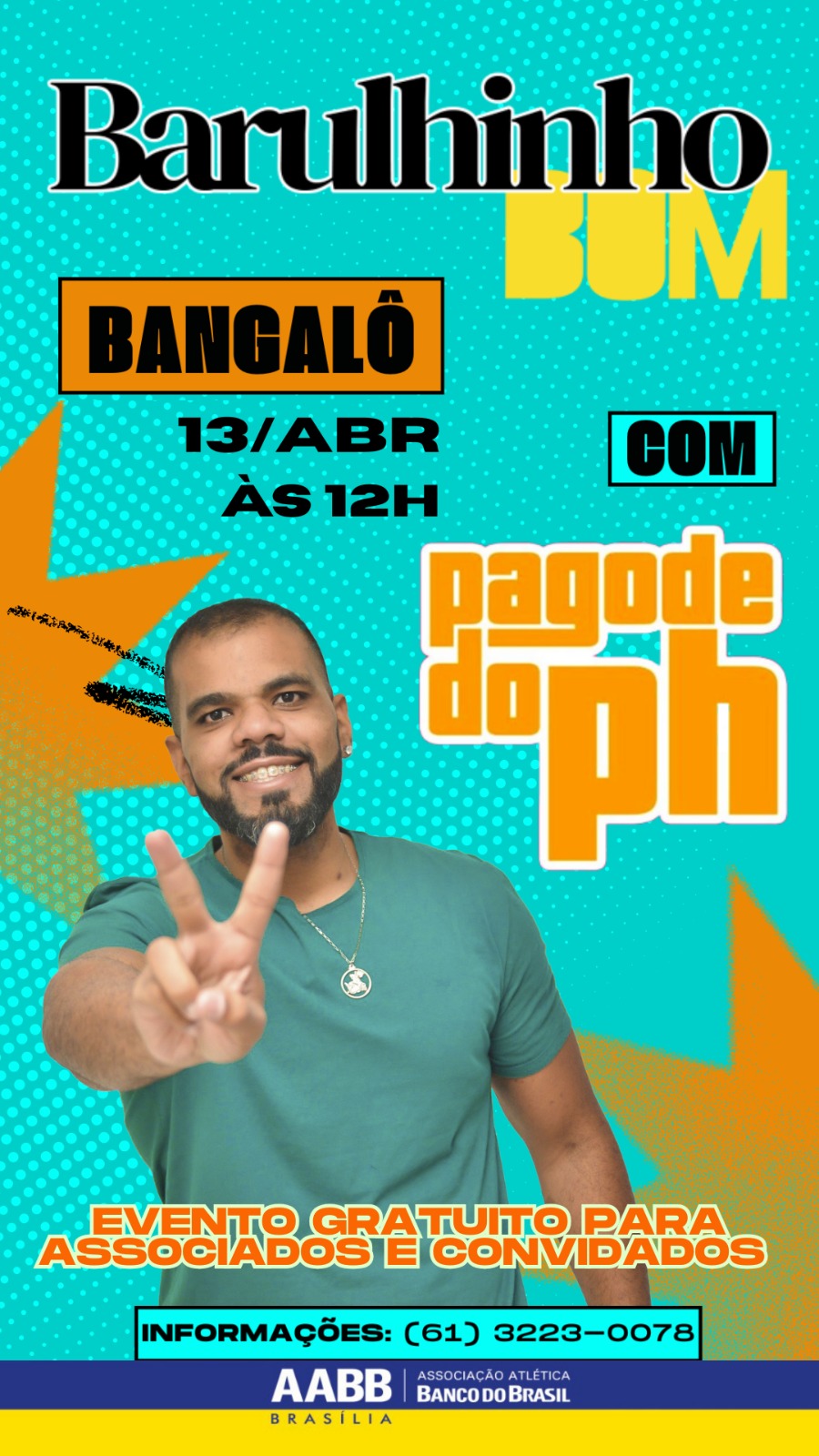 Neste domingo (13/4), vai rolar o melhor do samba e pagode dos anos 90 na AABB Brasília. A partir das 12h, o Bangalô será palco de uma apresentação incrível do grupo Pagode do PH. O evento é uma ótima dica para os atletas e público em geral que vão prestigiar as semifinais do Campeonato Sessentão.