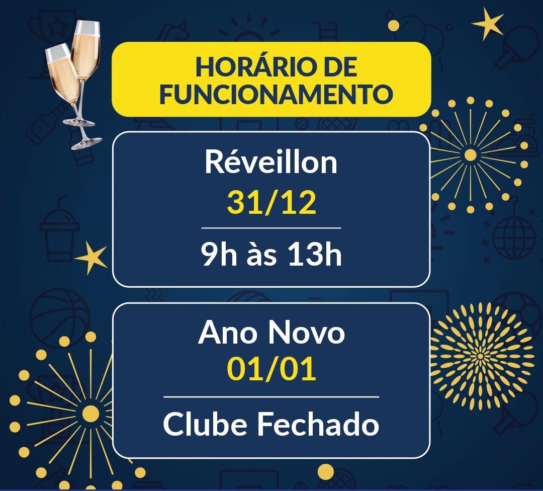 HORÁRIO DE FUNCIONAMENTO NO ANO NOVO No Réveillon (31/12), o clube estará aberto das 9h às 13h. Já em 1º de janeiro, o clube estará fechado Notícias Atualizado 27 dez, 2024 444 Compartilhar Agradecemos a compreensão de todos. 444 Compartilhar