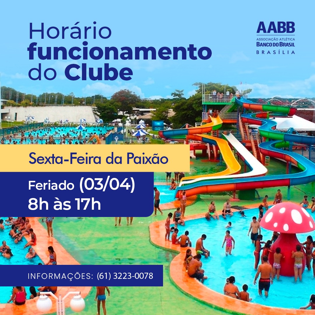 Na Sexta-feira da Paixão, 3 de abril, nosso clube funcionará das 8h às 17h. Outras informações: 3223-0078.