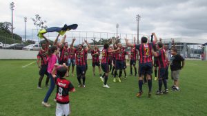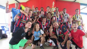 Laranja 2 x 1 Trayras “B” – Jogo começou nervoso, como em toda final e com as equipes se respeitando muito, ficou aquele jogo de meio de campo, com as equipes tocando de lado, tentando valorizar a posse de bola e esperando um erro do adversário até que aconteceu. Ramon, oportunista como sempre, pegou livre a bola, após bobeira da zaga e com categoria abriu o placar para o Trayras, indo assim para o intervalo. Na volta o jogo continuou como estava, mas com o Laranja um pouco mais agudo e arriscando um pouco mais, foi premiado com o gol do Alessandro, que deixou o jogo um pouco mais aceso. Em seguida Hiel, um dos destaques do jogo e da competição pelo lado do Laranja, honrou a sua condição de protagonista e virou, deixando o Trayras triste, sem forças de fazer mais nada e assim concluíram o jogo. Após o jogo a galera do Laranja festejou bastante, mesmo fazendo a sua obrigação. “Fizemos a nossa obrigação. Parabéns ao Trayras pela bela partida e parabéns ao Laranja pelo título. Laraaaaaaaaaaaaaaaaanja” André Oliva (Laranja). Com o título da série “B”, Laranja que já foi campeão da série “A” em 2014, agora ficou completo com o título das duas séries e sobe junto com o Trayras para a elite em 2018.