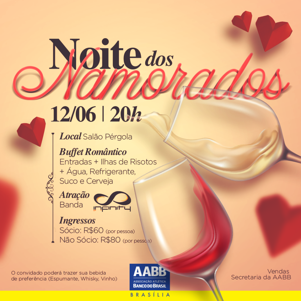 • Valor do ingresso por pessoa: Associados: R$ 60,00 corações | Não associado: R$ 80,00 corações