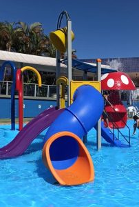 foi instalado um novo brinquedo, um escorrega super atrativo com baldinho de água pra deixar a criançada muito feliz na piscina do cogumelo.