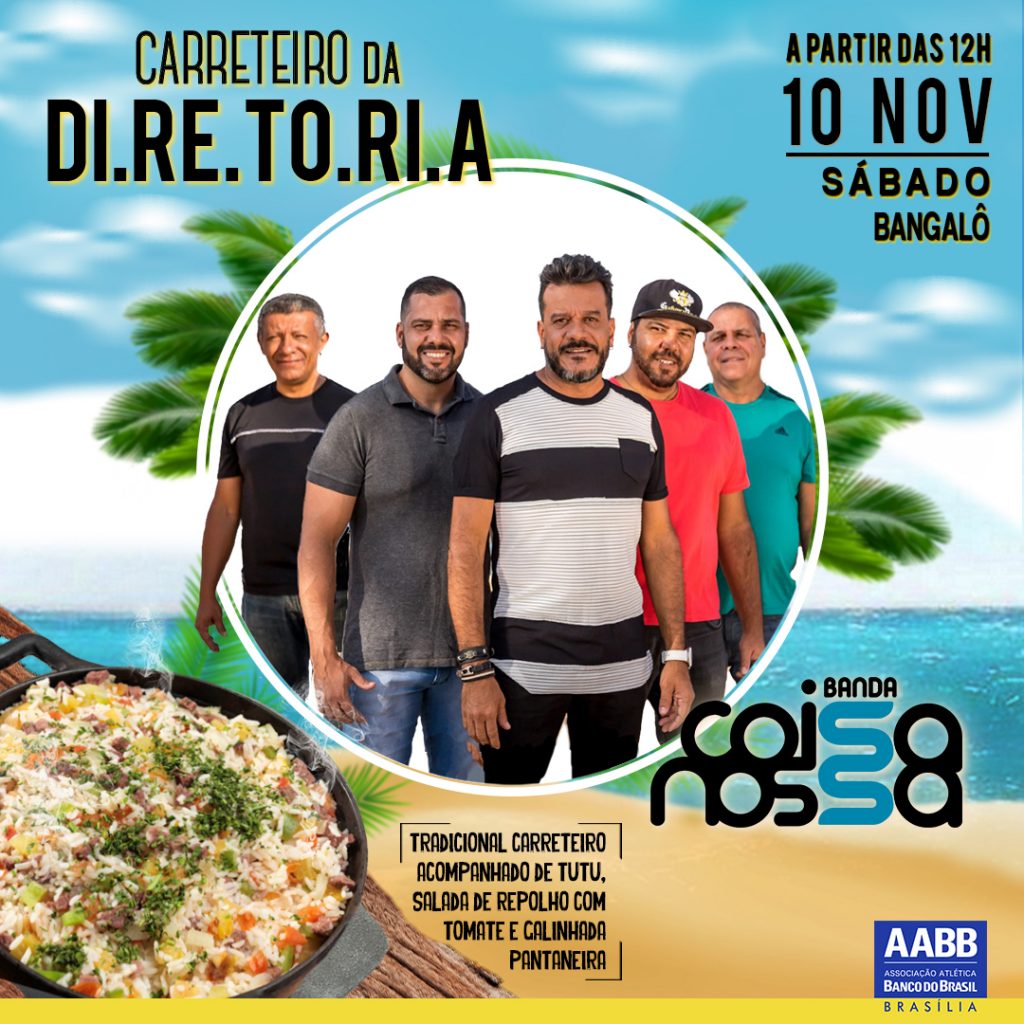 SÁBADO, 10 de novembro, a partir das 12h, no Bangalô da AABB Brasília.