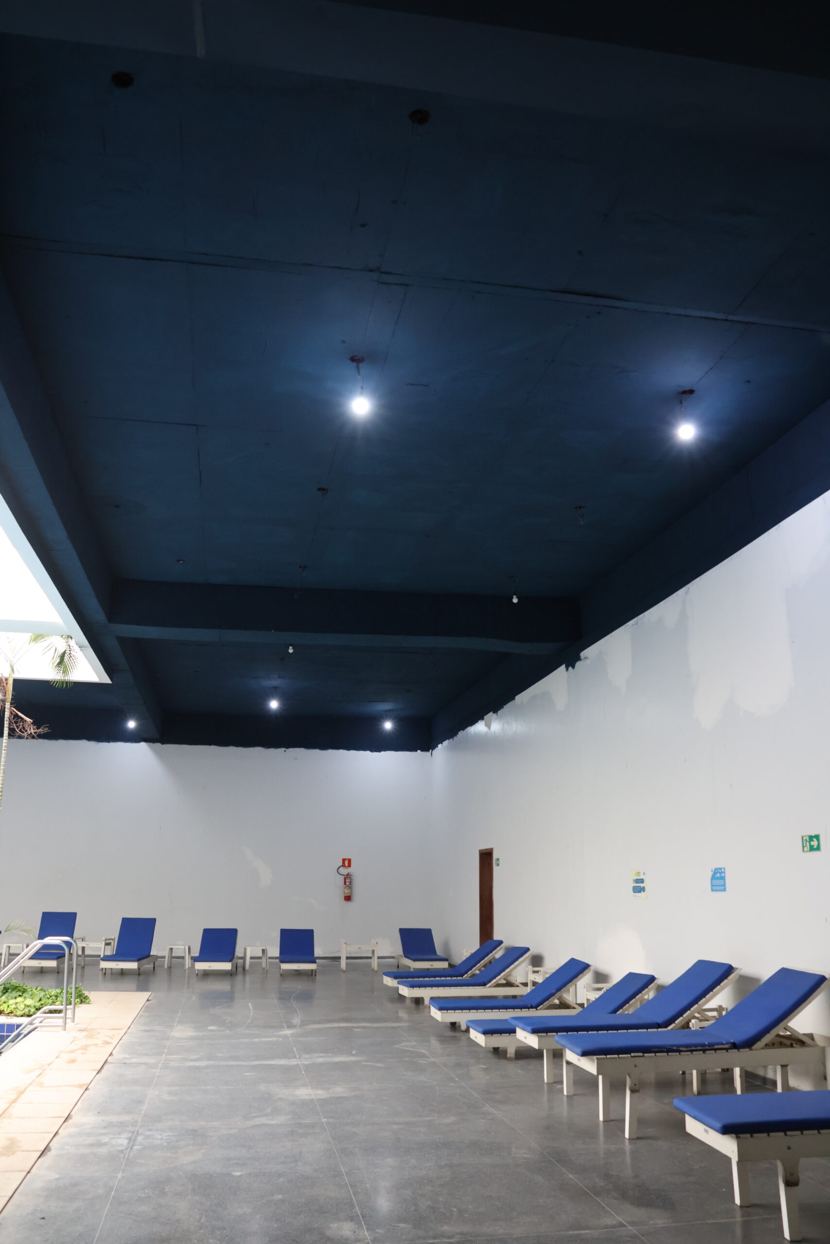 Segue em andamento a pintura do teto do local, que também passará por serviços de impermeabilização. A próxima etapa da reforma da Sauna será a iluminação das áreas comuns. Nas últimas semanas, o espaço também recebeu melhorias nas instalações elétricas.