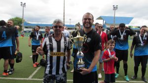 Camarões 3 x 1 Meia Boca – Meia Boca teve a missão de acabar com a hegemonia do Camarões na categoria. Jogo começou com o Meia Boca até bem, indo pra cima, só que descuidaram ou não deram moral para o artilheiro, craque e destaque da competição – Cotô, que na sua primeira bola, com apenas um marcador, o pintou fácil, viu o Wallacy chegando e rolou – gol do Camarões. Jogo foi indo e sem aprender a lição do primeiro gol, deixaram novamente o Cotô sozinho, que lançado, com categoria e 2 x 0. Após o 2 x 0, começaram os mimimi a beira do campo, mas o jogo seguia tranquilo, jogado na bola e assim concluíram a primeira etapa. Na etapa final o jogo continuava como estava, mas com o Cotô mais vigiado, o jogo seguia igual até que o Robinho, num lance bobo, perdeu a cabeça e foi expulso. Ai o jogo mudou totalmente. Com um a menos o Camarões se encolheu, ficou só se defendendo, mas agua mole em pedra dura tanto bate até que fura e o Cleyson diminuiu, deixando o jogo daquele jeito. Faltava pouco tempo para concluir o jogo, já que o Meia Boca, com todo o domínio da partida após ficar em vantagem numérica, demorou demais para diminuir e como não tinha outra alternativa, foi pro tudo ou nada, esquecendo inclusive do Cotô, o que foi fatal, pois o cara do campeonato pegou uma rebatida da zaga e na força foi direto pro gol, tentaram agarrar, não conseguiram e só o pararam com falta dentro da área – penalty claro, Cris bateu e deu Camarões de novo. “Fechado o ano com mais um título. Parabéns para o Meia Boca, mas nessa categoria não dá pra ninguém mais. Familia Camarões é pib” Felipe (Camarões).