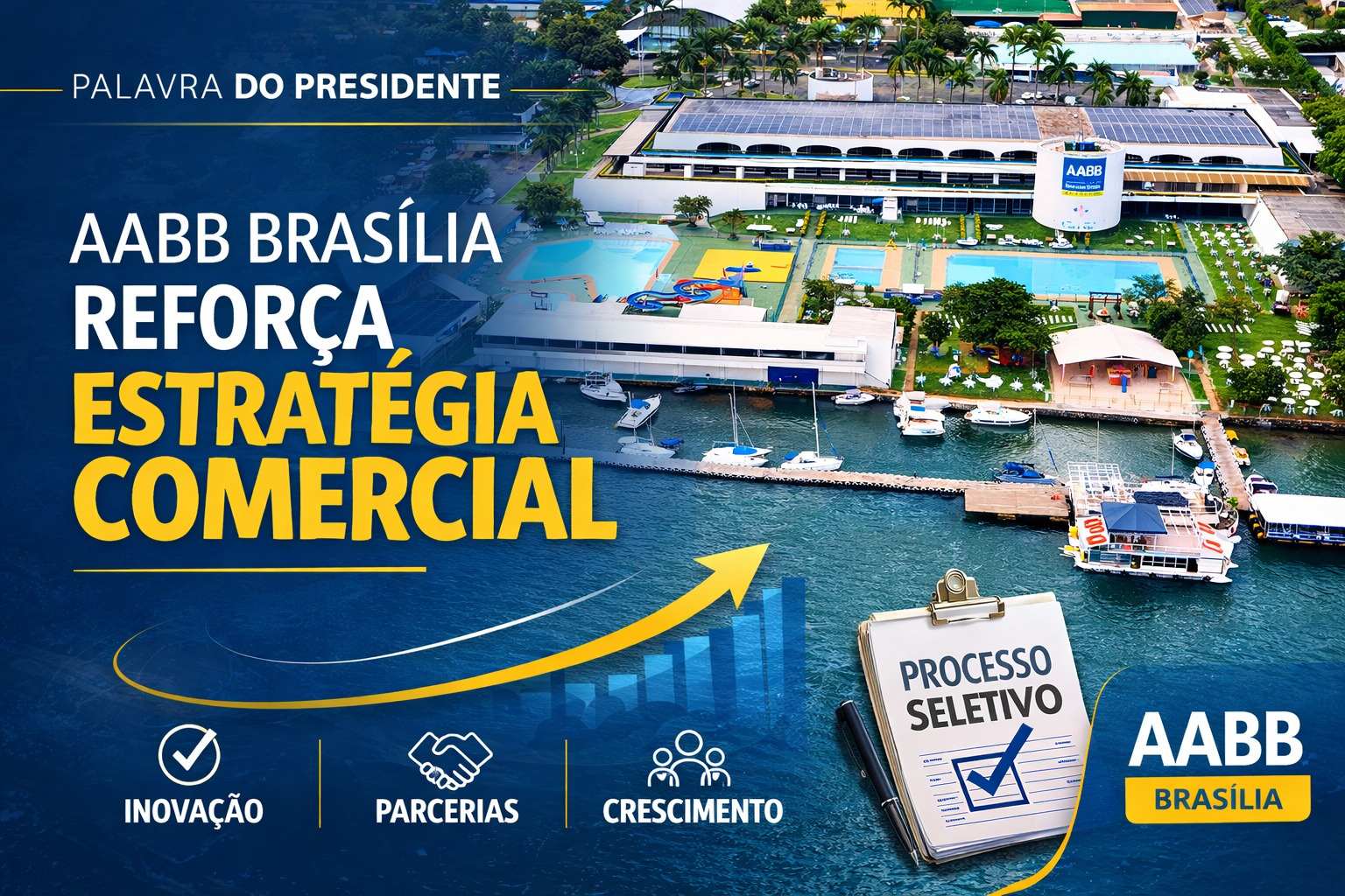 Foi com esse objetivo que criamos, pela primeira vez na história da AABB Brasília, uma Diretoria Comercial. A iniciativa representa um passo importante para fortalecer a gestão, profissionalizar a área e ampliar as oportunidades de geração de receitas. Para conduzir esse trabalho, em fevereiro convidamos o publicitário Rafael Gadelha, que passou a liderar essa área estratégica.
